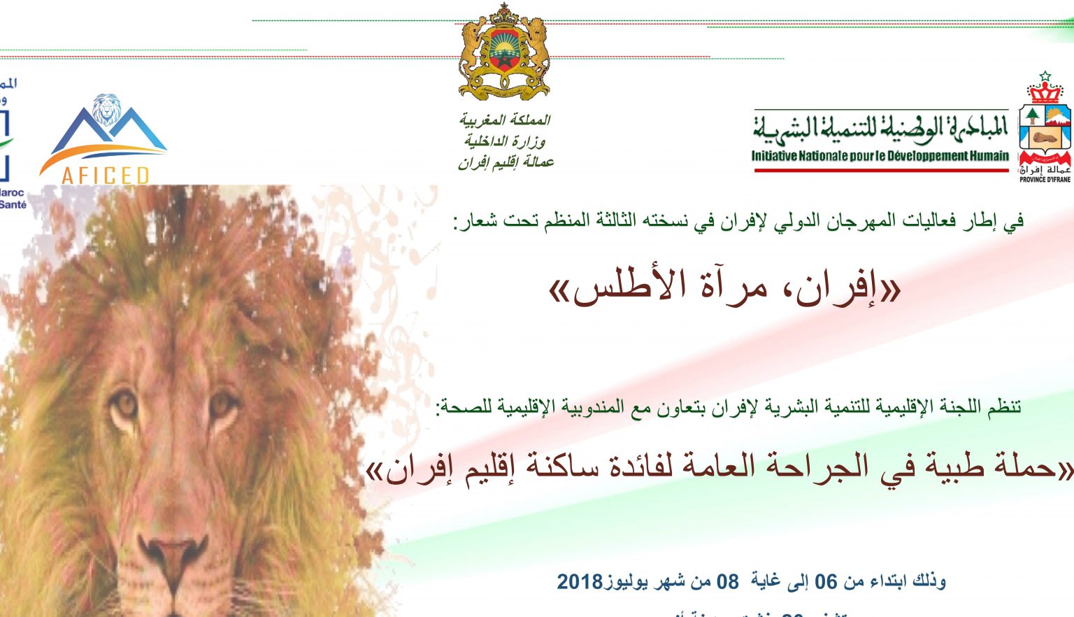 موازاة مع انطلاقة المهرجان الدولي لإفران. تنظم حملة طبية في الجراحة العامة في المركز الاستشفائي الإقليمي، مستشفى 20 غشت بأزرو ابتداء من يوم الجمعة 6 يوليوز الجاري إلى غاية 8 منه. وتندرج هذه الحملة الطبية، التي تنظمها المندوبية الإقليمية للصحة بتعاون مع المبادرة الوطنية للتنمية البشرية، في إطار المجهودات المبذولة للنهوض بصحة المواطنين وكذا تسهيل ولوجهم إلى الخدمات الصحية الأساسية مع العمل على خفض مواعيد الانتظار المسجلة في ظل قلة الموارد البشرية.