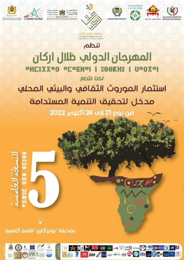 تنظم جمعية ظلال أركان للتنمية والتضامن الانساني ببويزكارن (كلميم)، بدعم من مجموعة من الشركاء، فعاليات الدورة الخامسة للمهرجان الدولي ” ظلال أركان” وذلك في الفترة الممتدة ما بين 21 و24 أكتوبر 2022 بجماعة بويزكارن.