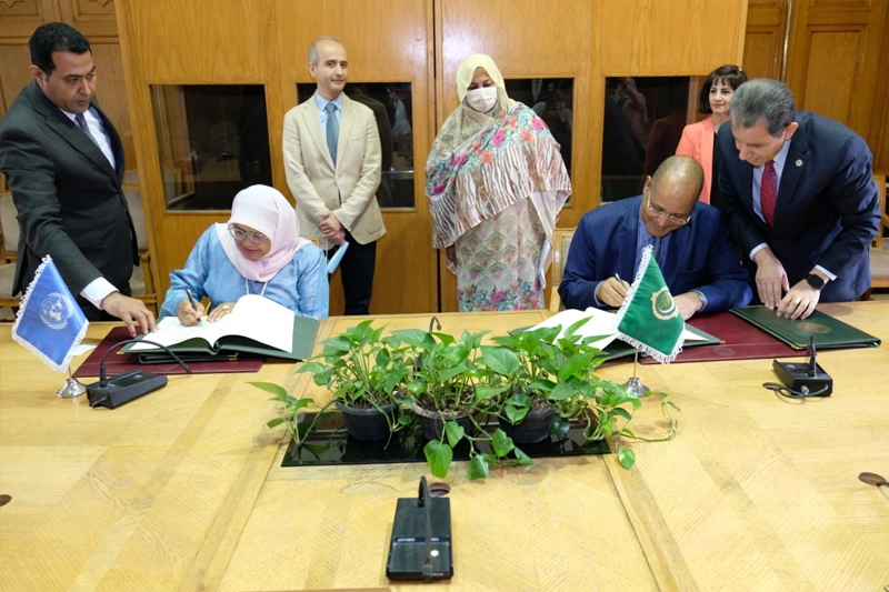 ووقع على مذكرة التفاهم هذه محمد الأمين ولد اكيك، الأمين العام المساعد رئيس قطاع الشؤون القانونية بالجامعة العربية ؛ وعن برنامج الأمم المتحدة للمستوطنات البشرية، ميمونة شريف، وكيلة الأمين العام والمديرة التنفيذية لبرنامج الأمم المتحدة للمستوطنات البشرية .