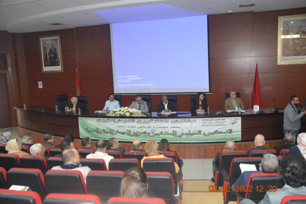 عقد المنتدى الوطني للمنتخبين الديمقراطيين مؤتمره التأسيسي تحت شعار” التمكين السياسي للمنتخبين تعزيز للديمقراطية والتنمية ” يومه السبت 03 دجنبر2022 بمدينة القنيطرة. وعرف هذا المؤتمر حضورا متميزا للمكتب السياسي لحزب جبهة القوى الديمقراطية يتقدمهم الأخ الأمين العام للحزب المصطفى بنعلي، وحضورا وازنا للمنتخبات والمنتخبين وضيوف على شرف المؤتمر ومناضلات ومناضلي حزب جبهة القوى الديمقراطية من مختلف جهات وأقاليم وعمالات وجماعات المملكة خلال جلسته الافتتاحية التي احتضنها مقر جهة الغرب الشراردة بني أحسن سابقا بمدينة القنيطرة.