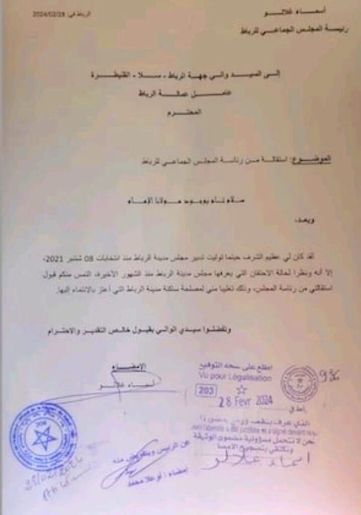 وتصدرت نقاشات الشارع الرباطي والمهتمون بالشان المحلي للمدينة أسماء مرشحة لخلافة أغلالو ورئاسة المجلس الجماعي للمدينة، بعدما لم يحصل اي تلاحم بين مكونات المجلس لتبقى الامور متصلبة في حين ان الرباط تعيش على إيقاع مشاريع كبرى.